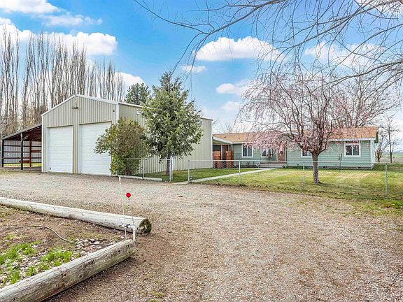 MLS# 274751 Experience the tranquility of country living on this expansive 5.83-acre property, ideally located on the outskirts of Pasco. Nestled within this picturesque setting is a beautifully maintained home, offering 2800 sq ft of living space, with 3 bedrooms (all with huge closets), a den/office, and 2 bathrooms. Upon entering, you'll notice the beautiful newer wood laminate flooring and carpet that runs throughout the home. The inviting living room features a cozy fireplace, creating the perfect atmosphere for relaxation and gatherings. The spacious kitchen offers an abundance of wood cabinetry, an island, large pantry, and a convenient breakfast bar, providing a delightful space for casual dining. Just off the kitchen is a more formal dining area with large windows that overlook the scenic property. An expansive primary suite comes complete with a charming reading area or an ideal space for a nursery. The ensuite bath features a dual sink vanity, soaking tub and a separate shower. The construction of this home was overseen by the seller, who ensured the addition of extra insulation in the ceilings, walls, & flooring, along with reinforced brick skirting/foundation with extra tie downs, as well as the installation of additional lighting during the completion process. The attention to detail and commitment to quality shine through in every aspect of this home. Included with the property is a Blink Security System, offering peace of mind for you and your loved ones. This amazing acreage also boasts an impressive 30x40 shop, complete with a loft, 14’ garage doors, electricity, and a 240 volt air compressor piped in throughout the shop, allowing for convenient workspace and storage of vehicles & toys. Adjacent to the shop, you'll find a 528 sq ft wood frame carport/RV port, providing further sheltered space. In addition, a 12x20 storage shed with electricity was installed five years ago at the front of the property. A covered deck invites you to relax and entertain while escaping the heat of the day and enjoying evening sunsets. The property features partial fencing and room to roam, offering a wonderful environment for your four-legged friends, with ample room to build a barn and corrals, should you desire. Don't miss this incredible opportunity to embrace serene country living with the convenience of nearby amenities, schedule a viewing today!