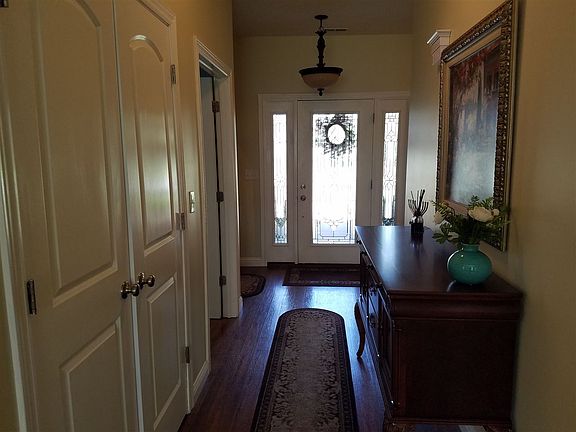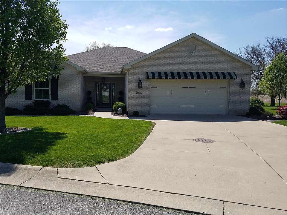 VERY ATTRACTIVE CUSTOM BUILT WHITE BRICK RANCH IN PRIVATE LOCATION ON A SMALL STOCKED LAKE. FISH FROM YOUR PROPERTY! ATTRACTIVE FRONT PORCH AND GORGEOUS LEADED GLASS ENTRY DOOR w/SIDELIGHTS. OPEN CONCEPT GREAT ROOM and KITCHEN, WITH WITH GLAZED CABINETS AND PANTRY. RECESSED LIGHTING AND LOVELY EATING AREA. YEAR-ROUND SUNROOM w/8 WINDOWS w/ACCESS TO CONCRETE PATIO and GREAT VIEW OF LAKE. OWNER'S SUITE w/LOVELY TRAY CEILING, BATH FEATURES DOUBLE SINK VANITY, WALK-IN SHOWER AND LARGE WALK-IN CLOSET. SPLIT BEDROOM PLAN. METICULOUS LAWN w/CURB ALONG EDGING. LARGE STORAGE SHED. 8 BRADFORD PEAR TREES AND AN AUTUMN MAPLE TREE. PRIVACY WITH ONLY FARM FIELD BEHIND THIS HOME.