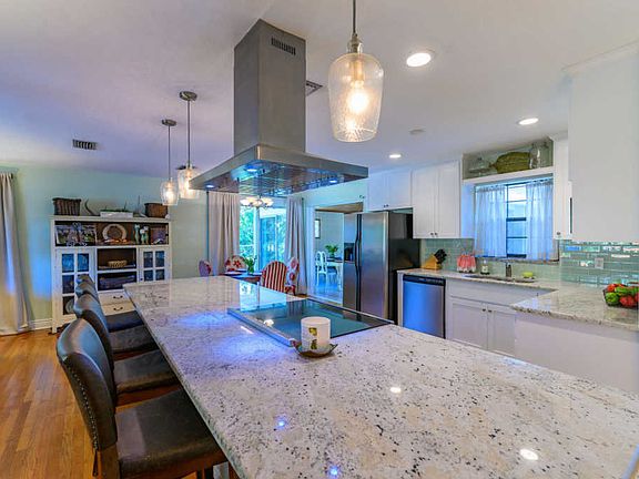This desirable one-of-a-kind property is brimming w character & is situated on a high ridge w Intracoastal river view! Casual vintage components mixed w traces of modern coastal & farmhouse style. The custom-designed kitchen has solid wood shaker cabinets, recessed lights, gorgeous glass tile backsplash, a generous island w white granite, elegant glass pendants, range hood & SS appliances. Beautiful solid oak floors contribute to a warm rustic charm & multiple sliding doors & windows in all directions flood the home w light. One set of hurricane impact sliders leads out to the oversized sundeck overlooking the water. Oversized side-loaded 2 car garage w back door & window. Wonderful neighborhood w a community dock, close to major employers, 10 min to the beach, 6 min to Downtown Melbourne.