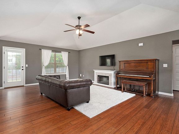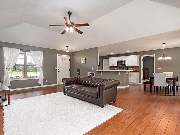 Gorgeous all brick home with completely open floor plan. Nice quartz countertops in the kitchen and all bathrooms, walk in pantry, no carpet...all hardwood floors throughout, high ceilings, split bedroom floor plan, 6ft privacy fence, big mature trees in backyard with large patio, in ground storm shelter. and backs up to the woods.