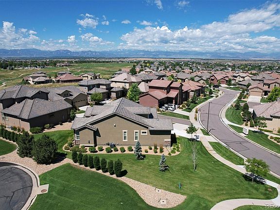 FOR SALE IN THE SOUGHT AFTER VISTA RIDGE GOLF COURSE COMMUNITY! 1411 Skyline is your MAIN-FLOOR, LOCK & LEAVE paradise. Situated by the Colorado National Golf Course, Skyline offers quick assess to 18 holes, shopping/eating & main freeways. You'll be greeted with engineered wood floors, high ceilings and an open concept living space. Tucked off the main entrance is a guest bedroom and full bathroom. Notice the sleek shower tile and custom countertops. Just beyond that is the large office or den. The Vivant Security System can be controlled from your phone & offers peace of mind. Enjoy entertaining in your beautiful kitchen, dining and living area with SONOS SURROUND SOUND throughout. Thoughtfully designed, Skyline offers a stainless steel double oven, microwave, refrigerator, hood vent and dishwasher. New pendant lights and cabinet hardware give the space a luxurious feel. Notice the large pantry and butlers kitchen with ample storage. Make your way to the large primary bedroom with plantation shutters and a, spa-like, 5 piece en-suite. For added convenience, the laundry room is right outside of the primary bedroom with upgraded cabinet storage and a sink. Continue your preview in the full finished basement with a third bedroom and bathroom. After a round of golf, enjoy gathering around the bar with a built in dishwasher, sink and beverage cooler. End your tour at the unfinished 200 square feet in the basement. Notice the water purifying system that was recently installed! For the grand finale, you'll be pleased to see that 1411 Skyline is on a corner lot right across from the community mailboxes AND has MOUNTAIN VIEWS from the drivewat!! This community was strategically planned to have NO above ground fences for aesthetic appeal & to eliminate pet noise outside. When we say quiet and low maintenance, we truly mean it! This home is truly a gem. PRIDE IN HOMEOWNERSHIP is EVIDENT throughout. Welcome home!