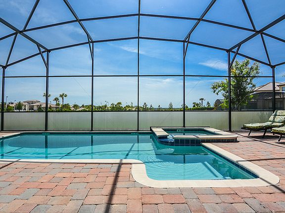 Simply the BEST location for a Vacation home in The Retreat at ChampionsGate. One of the premier homesites backing to a greenbelt and the famed Oasis Amenity Center. Now it can be yours! The Maui model features 8 bedrooms, 2 on the first floor including Master Bedroom with walkout onto the expansive covered patio. A large open kitchen features 42" Espresso Cabinets with Granite Counters and Stainless Steel appliances with oversized breakfast bar leads to the living room and dining room and out to the pool deck area. Upstairs you will find 6 more bedrooms with 3 full bathrooms, a large loft area and 20' x 14' Bonus Room with french doors. A sparkling pool is the perfect place to enjoy your Florida days and nights. Privacy screening and NO REAR NEIGHBORS make it your own personal oasis with views of the Magnificent Oasis featuring lazy river, private cabanas, quiet pool, fitness center, restaurant, play area, sand volleyball courts and more! The community features an 18-hole golf course within the gated community and just minutes from all major attractions, not to mention the new $47 million Downtown ChampionsGate under construction now. Don't miss your opportunity to own at the best price and location in the community! This home has never been in the rental pool, only friends/family vacation use, so it is in tip-top condition. Extra add-ons like whole house gutters, Bali Cordless window coverings, Somfy motorized shades on living room windows, high-end lighting, security system and more.