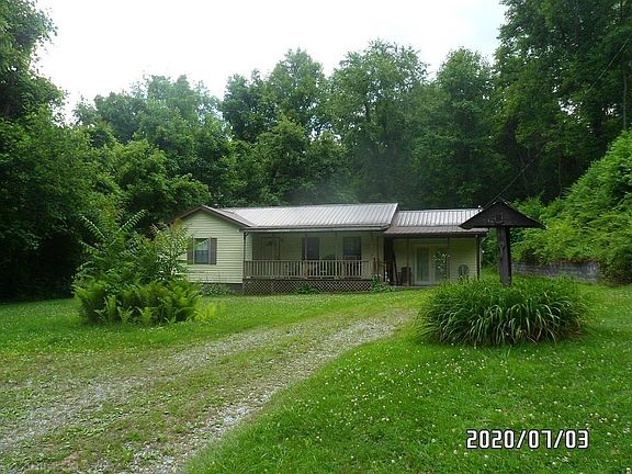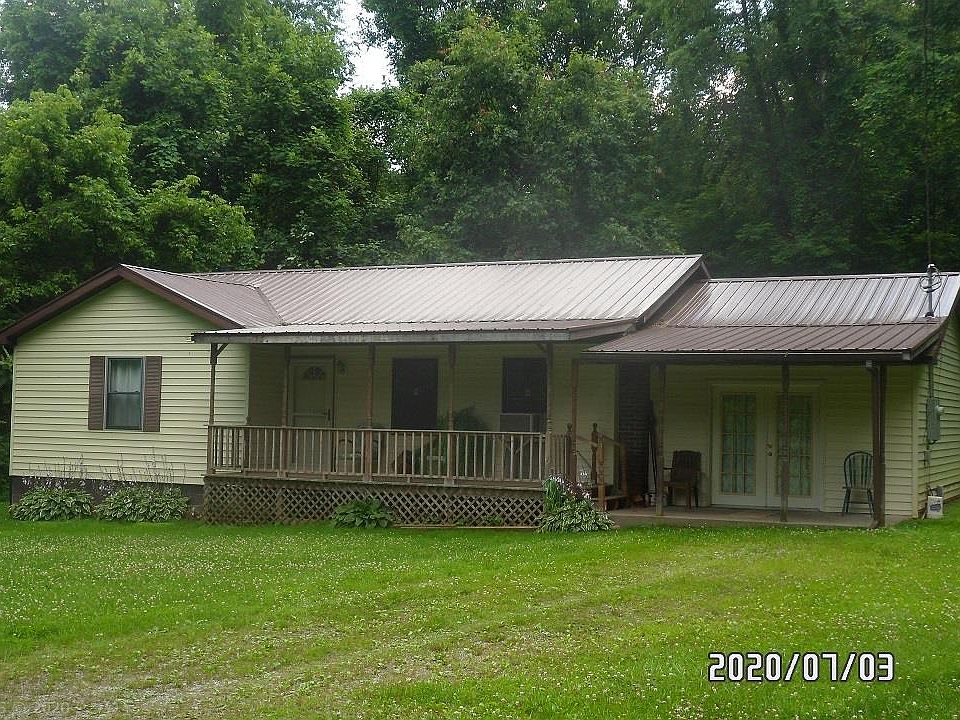 Home with detached garage. 18.8 acres, wooded with timber value. Very private, Home has newer metal roof, very well maintained. Exc. hunting. Home has 3 types of heat: EBB, Propane wall heater and outside wood burner.