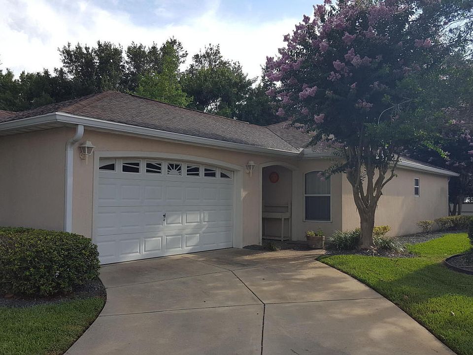 Highly sought after Villa in one of Marion County's premier active adult communities, Spruce Golf & Country Club. Amenities include swimming pools, tennis courts, a fitness center, a huge community center, a clubhouse with a full service restaurant with a bar, & a championship 18 hole golf course. The home features, a very open floor plan with lots of living space, a color coordinated paint scheme, cathedral ceilings with plant shelves, beautiful wall to wall carpet, a big dining area, a large galley kitchen with stunning cabinetry, a breakfast nook, & up graded appliances. The master suite has a walk in closet, a spacious vanity & a ceramic tiled shower. On the rear of the home is a cozy, private screened in porch. The gorgeous furniture can also be purchased outside of closing