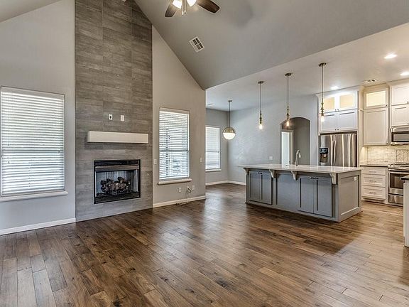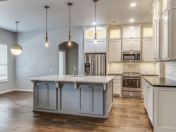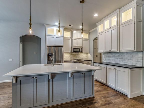 Just in time for school, this modern-craftsman beauty has it all. Luxurious kitchen features floor to ceiling cabinets, quartz counter tops, gas range, LED cabinet lighting, and stainless-steel appliances. Gas log fireplace is bricked up to the living room’s dramatic vaulted ceiling. Owners’ suite boasts custom coffered ceiling in bedroom, bath includes free standing bathtub, double vanity and large walk-in shower, with a well-designed closet that’s truly a treat! Mud room next to laundry room, upstairs BONUS room with full bath and closet could be a fourth bedroom/study/etc. Three car garage has 8ft doors and in floor storm shelter. Backyard is great for entertaining with an oversized back patio (TV stays). Walking distance to school, neighborhood pool, just off NW Expressway. Come take a look for yourself!