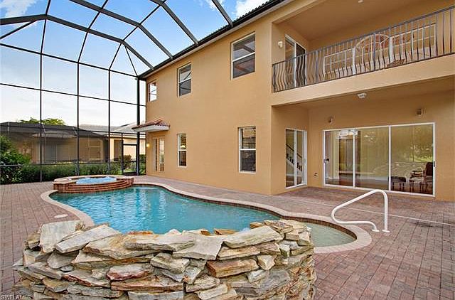 Welcome home to this palatial lakeside gem! Spacious 5 bedroom, 4 bathroom home with oversize den/bonus room, and 3 car garage! Wonderful open floor plan with a spacious kitchen, granite counter tops, and stainless steel appliances. Formal dining room, formal sitting room, and ground floor bedroom. 4 bedrooms upstairs including master bedroom retreat with private balcony and lake views. Wonderful living areas opening out to your oversized screen enclosed entertaining area with pool, spa, and water fall fountain. The perfect place to relax! Gated community with community pool, clubhouse, and playground. Close to the islands, beaches, shopping, restaurants, and entertainment.