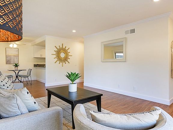 Are you looking to downsize? Or maybe the perfect first home? Come see this fabulous, single-level home in the highly desirable community of Laurelwood. The community borders Tustin and Irvine, providing easy access to both the Market Place and the District. This discrete single-level, end unit enjoys a private, interior location and is ready to move in. Recent updates to the property include new laminated wood flooring throughout the house, new base boards, crown moldings, and Celling fans in every room. The property features a remodeled kitchen with new Quartz Countertops, new white cabinetry, recessed lights, a new dish washer, an electric stove, a built-in microwave, and a laundry closet with washer and dryer. The master bedroom has a mirrored closet door and a sliding glass door with access to a private patio. All bathrooms have been updated. The open floorplan is perfect for everyday living, as well as for entertaining family and friends. The large living room overlooks a spacious and enclosed patio. Parking for the unit is right outside with 2 covered carports. Enjoy the association amenities with a park-like setting that includes pool and spa, playground, picnic tables, tennis courts, basketball courts and large greenbelt areas. Residents can also apply for community RV parking/storage for a small monthly fee. Close to Freeways, Toll Roads, Shopping, Restaurants, schools, Metro station, John Wayne Airport and More. No Mello-Roos and very Low HOA Dues!