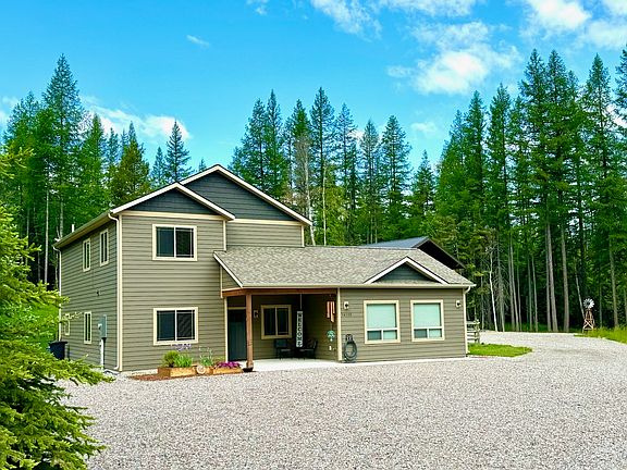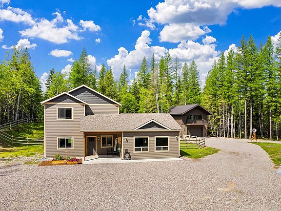 Motivated seller, New Price!Unique property on 2.5 acres boasting 3117 ft.² of total living space.Main home is a 1952sqf four bedroom two bathroom residence built in 2018. Property is nestled in a forested "large lot" neighborhood with a view of the Swan Mountain Range.Master bedroom is on the main floor with a newly remodeled, ensuite bath with walk-in closet. Living room and dining room area have been reconfigured to better suit the home and have been remodeled as well. Large bonus area upstairs is neighbored by three bedrooms and a bathroom.Original garage has been converted into a mother-in-law suite, which includes kitchenette with refrigerator, living room, bedroom, washer/dryer, and a 3/4 bathroom.Newly completed in May of 2024, Shop with guest house above.Shop consists of 832 ft.² with 832ft.² of living space upstairs. Apartment offers "open concept" living which includes a large three-quarter bathroom with closet storage space and washer/dryer hook ups. Listed by Signe Ensign