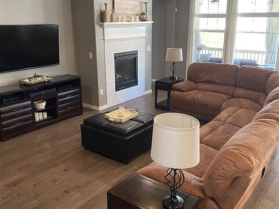 Back on Market! Buyer's contingency fell. Ranch / One level living at it's best! Beautiful and spacious open floorplan with extended 5 inch plank wood flooring, large windows with custom shades/blinds, 9 foot ceilings, tall 8 foot doors and arched walkways thru-out. Large Living room with gas fireplace (and blower). Stunning kitchen with granite counters, stainless steel appliances, gas cooktop, double oven, walk-in pantry, built-in wine rack and lots of cabinets and counter space. The bedrooms are privately situated in the home with large closets. The master walk-in closet has a convenient door to access laundry room (with utility sink). Massive full unfinished basement with wide open layout, rough-in plumbing, 9 foot ceilings - no odd basement configuration here. Enjoy the fully landscaped yard with many flower beds, trees, custom retaining wall, pergola and large covered patio, garden area and convenient concrete sidewalk that wraps the entire home. The oversized 3 car garage has 15 ft ceilings and a garage service door. Rare Lennar Tolleson Ranch floorplan with Solar power. Only two of these models were built in Lewis Pointe. Lewis Pointe is NOT the 55+ only community. Must See!