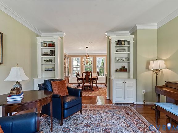 Welcome to your Riverdowns dream home! With 5 bedrooms, 3 ½ baths, and a spacious ½-acre yard, this home has been lovingly cared for by its original owner and is ready for its next chapter. Perfectly located one street over from schools and the James River trail system, it blends everyday convenience with spaces that bring people together. Step inside to a bright, welcoming foyer with custom details that make a lasting first impression. The formal living and dining rooms are ideal for holiday dinners and celebrations, with hardwood floors, audio system, built-ins, elegant millwork, and a sparkling chandelier. The chef’s kitchen is the true heart of the home, featuring an oversized granite island, double ovens, and plenty of cabinet and counter space. Best of all, it opens directly to the great room where you can keep an eye on homework or ball games while enjoying the cozy fireplace. Everyday routines are a breeze with a main-floor office for work or study, and a handy laundry breezeway with built-in cabinetry that leads to the oversized 2 car garage. Upstairs, the private primary suite offers a quiet retreat with newer carpet, walk-in closet, and spa-like bath with jetted tub and double vanity. Four additional bedrooms with brand new carpet and paint give everyone their own space. Two bedrooms share a Jack-and-Jill bath, another has private access to the hall bath, and the large 5th bedroom can easily serve as a second office, playroom, or hangout. The unfinished 3rd floor already has HVAC lines and offers room to grow. The backyard is the ultimate gathering spot! With over 300 sq. ft. of Trex-style decking, a 12x12 screened porch, and an upgraded stone patio with a wood-burning fireplace, it’s perfect for summer barbecues, fall football nights, and cozy fireside chats. A full irrigation system, drip watering for garden pots, and professional lighting mean you’ll enjoy the outdoors year-round. This is more than just a house; it’s a place to make memories for years to come.