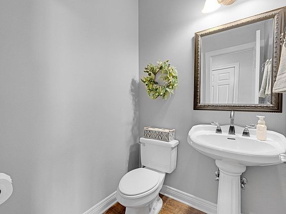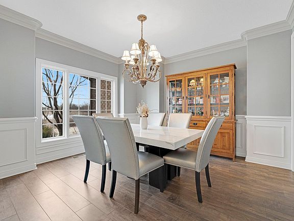 Nestled in the desirable Bridgewater subdivision of Southwest Allen County, this stunning waterfront two-story home offers exceptional living with a 3-car garage and breathtaking views from every room. Step inside to a formal dining room leading into a grand living space with cathedral ceilings, floor-to-ceiling windows, and a cozy fireplace, flowing into the open wraparound kitchen with a floating island, stainless steel appliances, and easy outdoor access. The private main-floor ensuite retreat boasts cathedral ceilings, a double vanity, a jetted tub, and a glass shower. Upstairs, you’ll find three additional bedrooms and two full baths. The finished basement is an entertainer’s dream, featuring an oversized family room with a kitchenette wet bar, a fifth bedroom, and a full bath. Step onto the open deck overlooking the pond and enjoy the expansive yard. Recent updates include new HVAC, sump pump, washer/dryer, ADT security system, and invisible fence installation. Conveniently located within 15 minutes of Jefferson Pointe, Lutheran Hospital, golf courses, and local eateries—this home is a must-see!