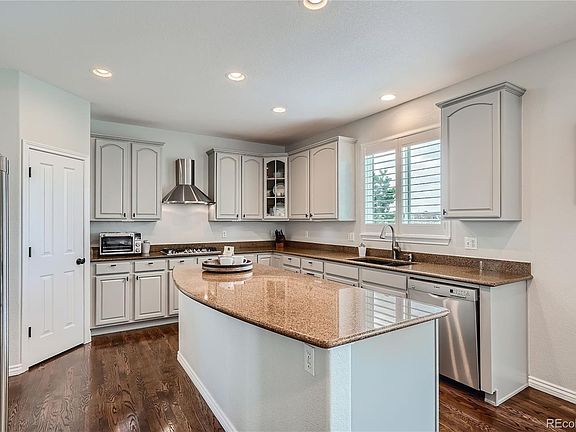 Welcome to the prestigious Broadlands neighborhood. Pride of ownership shines throughout this meticulously maintained two-story residence offering a blend of elegance & comfort, w/ a number of stunning updated features to cater to your every need. As you step inside, you are greeted by a light-filled, open floor plan, accentuated by gleaming wood floors that lead you through the main level. The welcoming family room, complete with a cozy gas fireplace, is the perfect spot to unwind after a long day. Enjoy an evening sunset on the back covered patio while overlooking hole 13 of the Broadlands Golf course. This private backyard is a serene escape! The heart of the home, the spacious kitchen, is a chef's dream, featuring updated appliances, double oven, kitchen island, & pantry. Whether hosting a dinner party in the formal dining room or enjoying a casual meal in the eat-in kitchen, this space is sure to impress. The main level also boasts a home office, ideal for those who work from home, w/ French doors offering privacy & tranquility. An updated ½ bath & main floor laundry w/ washer & dryer complete the main level. Venture upstairs to find 4 bedrooms, including a guest suite w/ a private bathroom. The primary bedroom is a true retreat, offering both mountain & golf course views, vaulted ceiling, & huge walk-in closet. The updated five-piece bathroom is a spa-like oasis, featuring walk-in shower & luxurious finishes. The finished basement is an entertainer's delight, featuring a spacious rec room, home gym, & a special feature hidden storage room behind a bookshelf door. The 5th bedroom, w/ private bathroom, offers a secluded space for guests or family members. Residents of the Broadlands community enjoy access to a range of amenities, including the golf course, community pool, & parks, ensuring there is always something to do close to home. Don't miss your chance to own this exquisite property in one of the most coveted neighborhoods in the heart of Broomfield.