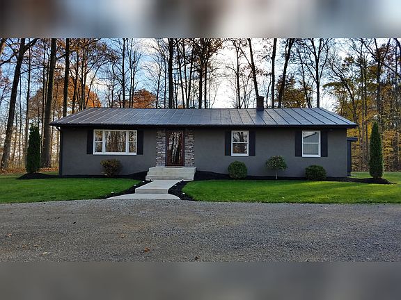 Opportunities like this do not come along very often, so treat yourself and come enjoy the serenity of the woods that surrounds this beautiful home and 64' x 36' shop (half of shop is insulated). This move-in ready ranch style home includes 3 bedrooms, 1.5 baths and a full dry basement. The basement also has an access area where you could install steps that would lead up to the patio door (pictured) that leads to the outside. From spring until the leaves fall, you'll enjoy almost complete privacy, as the beautiful foliage paints a natural privacy fence around the property. The woods itself hasn't really been touched in years (aside from a trail down the middle) , so you'll be free to carve out your own trails throughout the 5 acres of park-like wilderness. Another perk of the property, if you have children, is that it is only a mile and a half directly south of Hertiage schools.