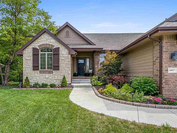 Open this Sunday (Aug. 5th) from 2pm-4pm! Come and take a look! If you are empty nesters looking at downsizing or a family needing 5 bedrooms this home has so many intangible values. NO Specials NO Hoa dues and low Wichita taxes. Life is easy living and low maintenance in this gorgeous CUSTOM-built home built in 2015. This house offers the best of both worlds- a new home situated in an established neighborhood! The neighborhood is lined with large mature trees giving you a tree house park like feel with complete privacy, Gain a new home build without having to invest in landscaping, an irrigation well, sprinkler system, wrought-iron fencing, blinds, and exterior home lighting--all large costs at the home owners' expense! With an open concept floor plan, large vaulted ceilings featuring old railroad-tie beams, a massive island, floor to ceiling stoned fireplace, and huge windows that display a tree-house view this home has it all. The master bedroom is serene with ultimate privacy as it sits back facing your wooded lot. Enjoy the large master bathroom with a frameless, fully tiled shower, large granite vanity with double sinks, and a huge walk-in closet. The basement was recently finished with carpeting less than a week old! The expansive windows make it light and bright and allows you to see the incredible backyard this house is situated on. The home is north/south facing which make it easy to enjoy the hot Kansas summer evenings with the choice of sitting on either the covered deck, or on the fabulous poured concrete patio that features a built-in stone fireplace. A lot like this is rare to find with such privacy. The backyard sits on a tree-lined lot, and the home is placed so that you cannot see either house next to you. This custom-built gem will not last long! Easy access to 96. Just down the street from new K-8 Christa McAuliffe award winning school. Call today for appt.