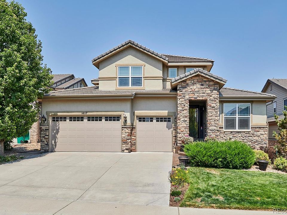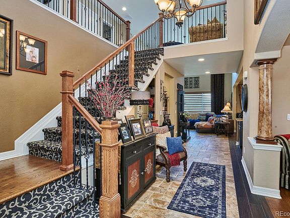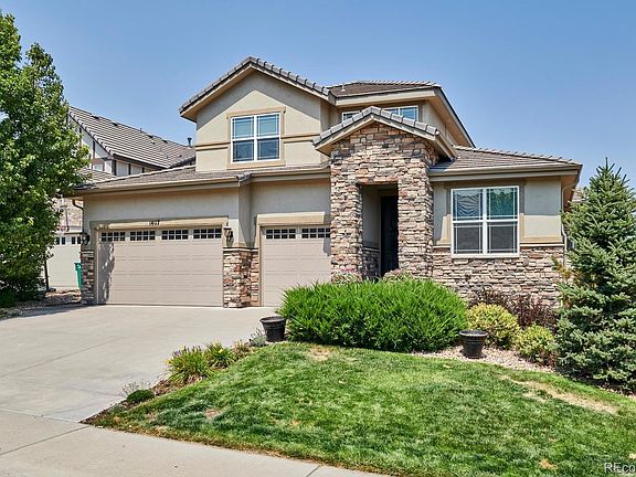This gorgeous two-story home in Meridian Estates, a very popular neighborhood, the best cul-de-sac location in the area. With six bedrooms, five baths, This home is one of a kind with beautiful main level master suite retreat coved ceiling, ceiling fan, 5 piece master bath his and her vanities, walk-in closet. Upstairs retreat to another master suite, walk-in closet. with two additional bedrooms, jack and jill bathroom, loft area perfect for reading or study area. This home is a very open floor plan with a formal dining room with coved ceiling, main level study with builtin bookshelves, gourmet kitchen with gas cooktop, double oven, microwave, slab granite countertops, tile backsplash, stainless steel appliances, center island with seating at the island, hardwood floors, tile floors throughout, large eating space, perfect for entertaining, walk out to the covered deck and another patio below with stamped concrete patio and walkways. Very light and bright, lots of windows! Enjoy entertaining in this fully finished basement with a wet bar, wine cooler, full-size refrigerator, with a TV in the basement bar area, game room, bonus room/family room, two bedrooms with full bath, two laundry rooms, one on the main level and one in the basement. Three car garage, Enjoy all the community events at the community pool, park, and playground. Easy access to I-25 and DTC!