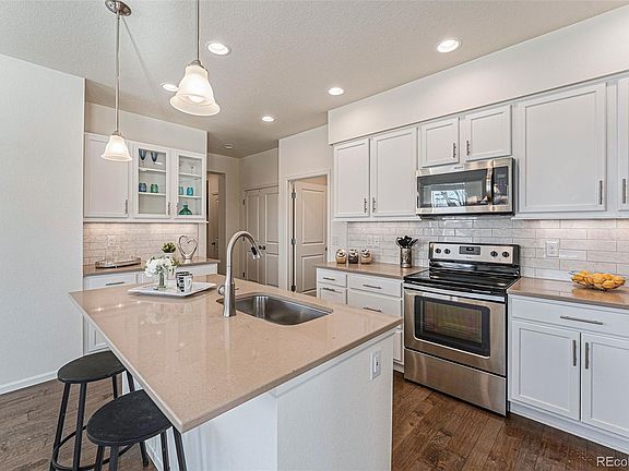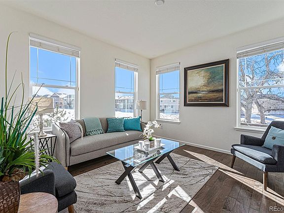 Welcome to this stunning paired home with breathtaking mountain views! This property boasts a spacious and inviting layout, and as you step inside, you are immediately drawn to the modern and stylish finishes throughout! Beautiful flooring, elegant light fixtures, and fresh paint guide you to the open-concept living area, with large windows that showcase the stunning mountain views. The chef's kitchen is a true masterpiece, complete with upgraded cabinetry, top-of-the-line stainless steel appliances, under cabinet lighting, quartz countertops, and a beautiful center island with seating. Whether you're cooking up a quick meal or hosting a dinner party, this kitchen is sure to impress! The house is pre-wired for a surround sound system! Retreat to the master suite and enjoy peaceful mountain views from the comfort of your bed, and beautiful barn doors lead to the ensuite bath! Two additional bedrooms, an office, and loft space providing ample room for both relaxation and productivity. Additional features of this amazing property include a two-car attached garage, mudroom with storage, convenient laundry room, and plenty of storage space with a crawl space and unfinished basement. The beautiful Trex deck faces the adjoining greenbelt and is the perfect place to watch amazing sunsets! Nearby walking trails, a park across the street, and a location that's just minutes from local restaurants, shopping, and outdoor activities, everything you need is right at your fingertips! Don't miss out on this incredible opportunity!