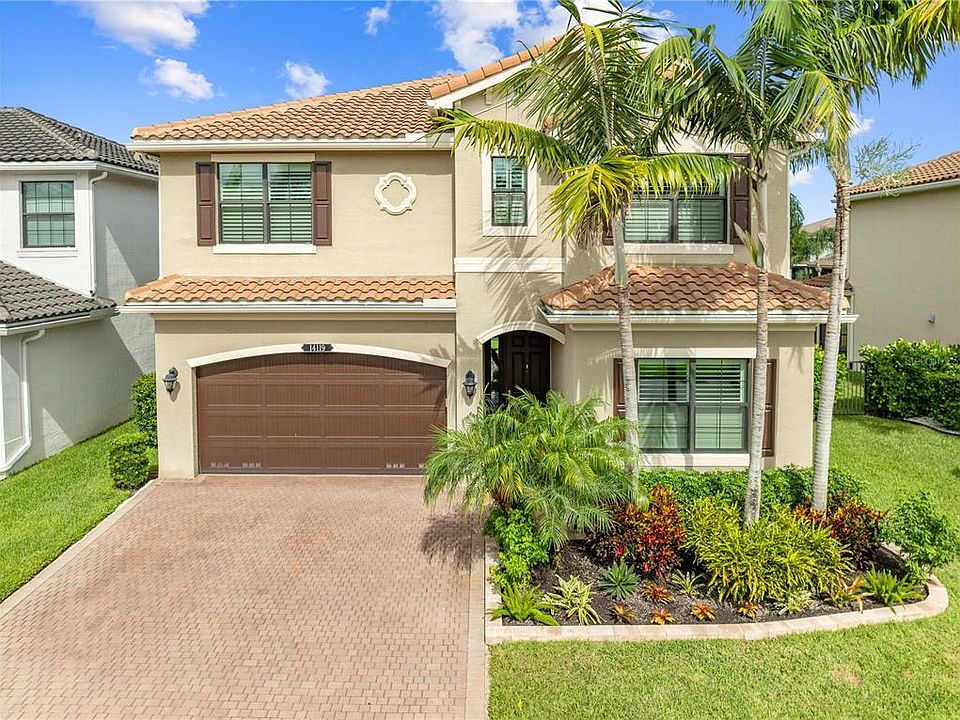 Welcome to this beautifully maintained, move-in ready two-story home, ideally situated on a premium lot with scenic water views in one of South Florida’s most desirable gated communities. This 24/7 guard-gated neighborhood offers the perfect blend of resort-style living and everyday comfort.Step inside and experience timeless elegance paired with functional design. Wide-plank luxury vinyl flooring flows seamlessly through the main living areas and bedrooms, complemented by crown molding throughout. Plantation shutters provide privacy and style on the hurricane-impact windows, while custom drapery accents the sliding glass doors that open to an extended brick-paver patio—perfect for relaxing or entertaining. An extended brick-paver driveway adds both curb appeal and convenience.The entertainment-style kitchen is the heart of the home, featuring soft-close cabinetry, quartz countertops, a range with double ovens, an oversized island with surrounding storage, and an extended counter for casual seating and meal prep. A custom pantry adds additional organization. All kitchen appliances were installed in 2023. The kitchen opens effortlessly to the dining area and living room, creating a bright and open-concept living space.A full bedroom with a custom walk-in closet and a full bathroom are conveniently located on the first floor—ideal for guests or multigenerational living. Upstairs, you’ll find a spacious secondary living area/flex space, a generous primary suite with two custom-built walk-in closets, and a private en suite bath featuring a garden tub. Two additional bedrooms and another full bathroom are also upstairs, along with a walk-in laundry room featuring tile flooring and abundant storage.Additional features include soft-close cabinetry and tile flooring in all bathrooms and the laundry room. A new air conditioning unit was installed in May 2025 for added peace of mind.The HOA provides exceptional value, covering lawn service, tree trimming, sidewalk pressure washing, and more—helping to keep the neighborhood pristine and worry-free.Residents also enjoy access to vacation-style amenities, including: A resort-style heated pool (winter) and cooled system (summer),canopy-covered seating, a splash pad, and covered playground.Indoor and outdoor basketball courts, pickleball and tennis courts, and a fully equipped, air-conditioned fitness center, and a stylish clubhouse with indoor card room and rentable event space.Lush tropical landscaping surrounds the entire community, creating an upscale, family-friendly atmosphere you’ll love coming home to.