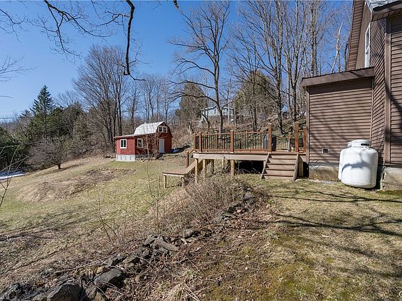 Welcome home! This well maintained home sits on almost 2 acres of land within a short distance to a tributary to Lake Bonaparte, which allows kayak access to the lake. Home features a first floor bedroom and bath, new pellet stove in living room, new hot water heater and new Trex decking off kitchen. Owner has also converted a storage shed with in-floor radiant heat into an accessory living space for guests. All appliances and most furniture will convey with property. Second level of home has two bedrooms and full bath. Outside is a garage and storage shed. All of this is located on a dead-end street. Make an appointment to see this home now.