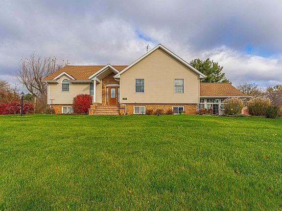 When only the finest will do! Totally rebuilt in 1995/1996 by reputable local contractor Galen Marten, this exceptional brick/steel sided nearly 3,200 square foot 4 bedroom, 3 bath raised ranch is STUNNING! The main floor boasts an open living/dining/kitchen concept with amazing natural light. Living/dining area features newer laminate flooring as well as a rear exterior access point. The kitchen is fully equipped with solid surface countertops and features an 8X13 adjacent laundry/craft room. Three bedrooms and two full baths also -- primary suite is host to a walk-in closet and private full bath with a whirlpool tub as well as shower. The finished lower level features a generous family room with a corner gas log fireplace, large fourth bedroom with a built-in desk area, kitchenette, third full bath, tiled mudroom, and a GORGEOUS 19X18 heated/cooled sunroom with its own heating and cooling unit as well as an exterior access point -- WOW! Property also features a two car attached garage, six panel interior doors, Andersen windows, lifetime roof, gutter guards, amazing composite rear deck (has storage underneath) with a large adjacent concrete patio, rear firepit, enhanced landscaping, storage shed, tiled front porch -- Chester-East Lincoln school district, too! NEW furnace and central air conditioning (2022), laminate flooring in various rooms (2023), washer, dryer, and refrigerator (2024), fresh paint, and modernized fixtures. A true showplace property inside and out!