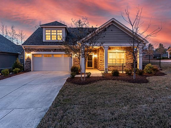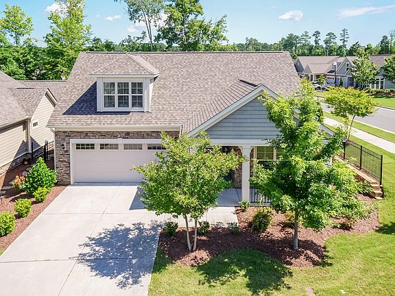 Welcome to your dream home located in one of Cary's premiere active adult communities! Situated on a large corner lot, this meticulously maintained residence offers the perfect blend of luxury, comfort, and convenience. As you step inside, you'll immediately notice the inviting open design that centers around a private garden paved patio, adorned with professional landscaping and stunning stone accents. This outdoor oasis is ideal for relaxation and entertaining. The main level features a spacious Owner's Bedroom with an ensuite bathroom and a generously sized walk-in closet. The primary bedroom has a cozy sitting area and elegant tray ceilings, creating a serene ambiance for rest and relaxation. Additionally, there's a secondary bedroom and an additional full bathroom for guests' convenience. Adjacent to the bedroom, you'll find an office/study, perfect for remote work or creative pursuits. Hardwood floors flow seamlessly throughout the first floor, leading you to the heart of the home—a gourmet kitchen featuring quartz countertops, a center island, and sleek stainless steel appliances. Venture upstairs to discover a third bedroom with living and dining area awaits, with a convenient wet bar. This well-maintained home is just steps away from the clubhouse, gym, and pool, allowing you to indulge in a vibrant community lifestyle. Plus, its prime location offers easy access to major highways, shopping destinations, dining establishments, and the renowned American Tobacco Trail.