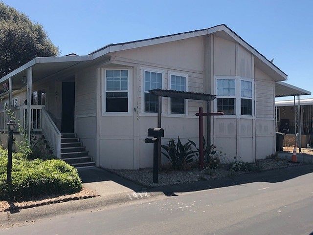 Manufactured Home in Spanish Ranch 1, all age mobile home park, has: 3 bedrooms; 2 full baths; vaulted ceilings throughout; spacious kitchen with island and nook area; separate dining room area; living room with wood burning fireplace; laminate flooring in living room, dining room, and hall; master suite with private bath and large walk in closet; 2 cell clerestory skylight in living room and 1 cell clerestory skylight in kitchen, indoor laundry room with washer and dryer; storage shed; home near guest parking; AC unit and more!