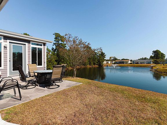 Welcome to 1412 Autumn Creek Ct, a charming 3-bedroom, 2-bathroom lakefront home in the desirable 55-plus community of Lakeside Crossing in Conway. This home welcomes you with a spacious, light-filled living room designed for effortless flow and enhanced by abundant natural light. The kitchen is a chef’s delight, featuring modern stainless steel appliances, a convenient work island, a pantry, a breakfast bar, granite countertops, and ample cabinet storage. The master suite provides a peaceful retreat with stunning lake views, a roomy walk-in closet, a cozy sitting area, a double-sink vanity, and a spacious walk-in shower. For relaxation or entertaining, the bright Carolina Room is perfect, basking in natural light with lovely views of the lake and fountain. A dining area with a graceful tray ceiling, a dedicated laundry room, and an extended garage complete the functional floor plan. Energy saving features of the home include solar panels and smart hybrid heat pump hot water tank. Outdoors, enjoy serene lake views from the back patio, an ideal spot for entertaining or dining al fresco. The inviting front porch is a wonderful place to relax and enjoy the neighborhood ambiance. Lakeside Crossing offers a wealth of amenities, including indoor and outdoor pools, a clubhouse with a library, pool tables, and a fitness center. Perfectly situated between highways 501 and 544, this home is just minutes from the beach, Intracoastal Waterway, Tanger Outlets, golf courses, shopping, dining, and entertainment. Experience tranquil, lakefront living in this welcoming community, book your showing today!