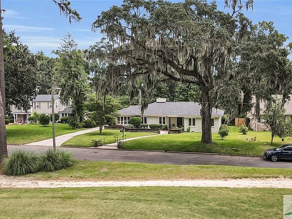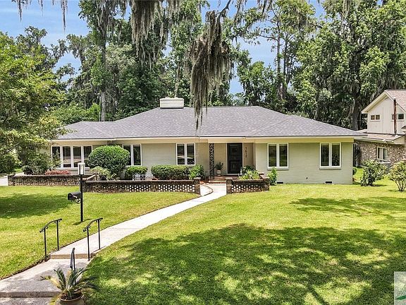 Empty-nester delight in GREAT location. All brick 1958 ranch with tee and green views of Donald Ross-designed Bacon Park Golf Course. Original architectural details abound in LR with picture moulding, neoclassical wood-burning fireplace, and pocket doors leading to large, window-filled formal dining room w/chair rail. Expansive kitchen with Jenn-Air range and refrigerator, Bosch dishwasher, original wood cabinetry, marble countertops/backsplash and walk-in pantry. Master BR includes custom-designed zero-entry shower with seat. Guest BR with attached original full bath and access to patio. High ceilings, original woodwork, spacious rooms and generous storage throughout. Attached in-law/care-taker/rental suite with separate entrance, full bath, second kitchen and laundry. Amazing fenced backyard with historic camellia grove designed by Clermont H. Lee. Double carport and shed. Whole-house Generac generator ensures power through any storm.