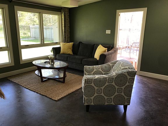 Nicely updated home in desirable Mueller. Stained concrete floors throughout! Kitchen boasts terrazo style counters & custom cabinetry; gas stove. Lots of windows bring in abundant natural light! Original fireplace w/ gas hookup. All walls resurfaced w/ stucco. Master bedroom w/ a large walk-in closet, soaking tub and a beautiful front courtyard. Back yard features raised garden beds and nice patio section. Back yard is gated with access to Greenbelt & Mueller Park. Renter responsible for electric, gas and water. Comes furnished with brand new furniture or can be taken out. Washer and dryer include in rental. Also a second fire places located in tv console! Large backyard, animals welcomed! House had a trail behind that goes to Mueller and has a park on the way!