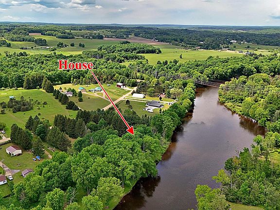 Beautiful turn key 3-bedroom, 2-bathroom home on the majestic Muskegon River, set on 1.5 acres. This residence features all main floor living with a well-designed layout. The huge master bedroom, complete with a large walk-in closet, is located on one side of the home, while the two additional bedrooms are on the opposite side, ensuring privacy and comfort. Enjoy the convenience of an attached 2-car garage with a workshop area, as well as a detached 2-car garage equipped with two outlets for RV hookups. The large back deck offers stunning river views and an abundance of wildlife, perfect for relaxation and outdoor gatherings. The home boasts a beautiful stone wood-burning fireplace and numerous sliders and windows to maximize the scenic river views. Most appliances are newer, including the washer and dryer. The property is topped with a metal roof on both the house and garages, installed just a few years ago. Additional features include central air conditioning, a newer hot water heater, well pump, and sump pump. This home was used as a highly successful Airbnb but would also make a great permanent residence or vacation home—you decide! This solid, well-maintained home offers great potential! While the driveway has some bumps and the home could use minor cosmetic updates, the price reflects these considerations. Being sold as-is Buyer/Buyer's agent to verify all information.