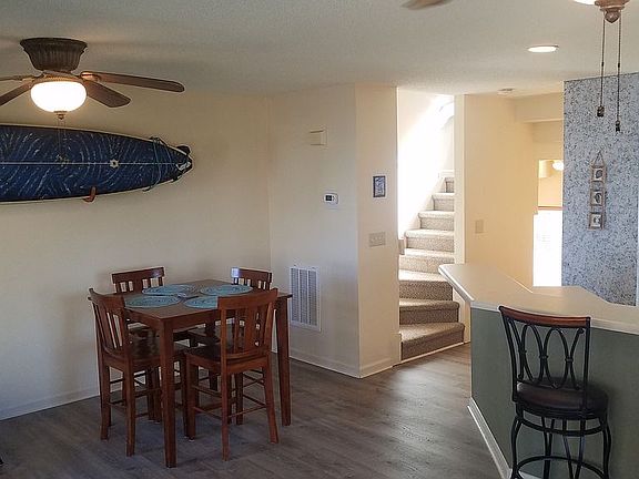 Welcome to your perfect Carolina Beach getaway! This nicely renovated townhouse, has a nice open floor plan with 2 decks and a newly installed patio in the backyard (More Pictures coming soon). Newly installed vinyl core plank flooring on the main level gives a beautiful beach wood look while being completely waterproof. Live year round in this well built home with modern amenities and updated insulated windows and doors. Or it can be your perfect vacation home! This home has a well established rental history from the past 2 years with a 5 star rating on VRBO! (Search Surfer's Paradise VRBO# 1715686) This highly desirable townhouse is located on the quiet north end of Carolina Beach; enjoy the over-sized garage parking space and additional private parking spot right in front of your door. Additional parking spaces for guests are available at the ends of the 4 unit building. Just a a very quick 3 minute walk to either Periwinkle or ClamShell beach access from this private, spacious 2 bedroom, 2 1/2 bath townhome. Or enjoy the ease of transporting your family and beach necessities with a street-legal, electric golf cart with chair rack on back and surf/boogie board racks on top. Golf cart may be parked in any town permit parking space for free.