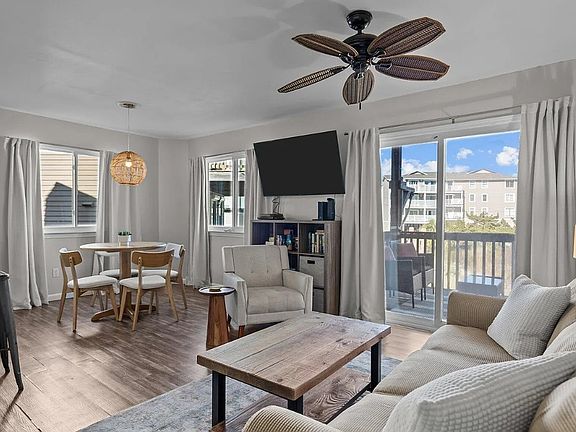 This property is a completely furnished/equipped townhouse-style condo on the quiet North end, available from October 1st until March 31 2026. Features include guaranteed parking for 2 vehicles with a 3rd shared spot for the building, garage, a laundry room with half bath on the main living level, and cozy backyard. Beach is very close proximity; North End Pier is also in walking distance. The property is available for the full duration or on a month to month basis. Owner pays for water/trash/sewer. Tenant pays for electric and internet.