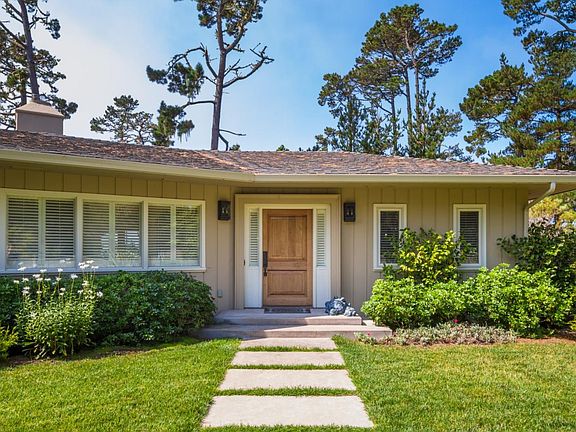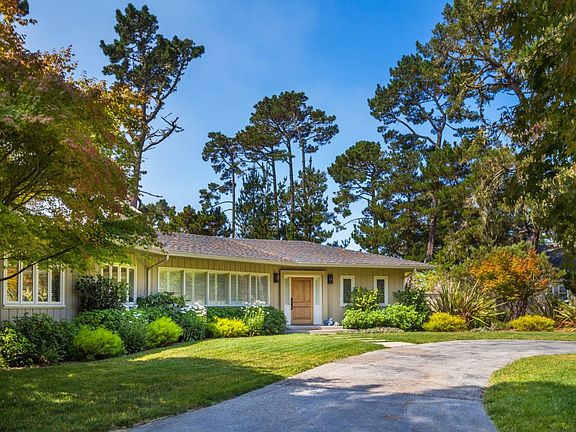 This light-filled, three bedroom, four bathroom Pebble Beach home offers an airy, modern, open floor plan that expands through several sets of glass doors to a large back patio surrounded by beautiful, mature landscaping. Enjoy year-round indoor/outdoor living and entertaining in this Pebble Beach retreat! This tastefully done home boasts a formal living room, dining room, and spacious gourmet kitchen with breakfast bar, three fireplaces, and hardwood floors throughout. The downstairs master suite offers his and hers bathrooms. An upstairs bedroom with fireplace and deck offers an elegant, private space for guests. The welcoming circular driveway, surrounded by beautiful greenery and landscaping, provides plenty of extra outdoor parking in addition to the spacious, 3-car garage. This is truly a Pebble Beach gem.