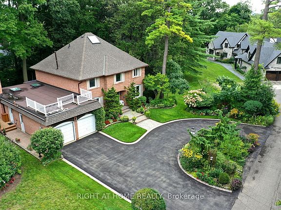 *LOCATION- Muskoka Like Secluded Property on a 80ft x 160ft Lot, surrounded by Mature trees & Perennial gardens, **LOCATION- Child Safe Private Road, ***LOCATION-In the Heart of Mineola, minutes to QEW, 427,401 ,Toronto. This meticulously maintained home offers over 4,000 Sq Ft of Living Space. Includes 4+2 bedrooms, Updated Eat-in kitchen with Granite Counter Tops ,Italian Porcelain Floors, Built-in Appliances with a walkout to Paradise. Entertaining is not a problem with a spacious Living ,Dining and Family Room, complimented with Brazilian Hardwood Floors and Fireplaces. The main floor also offers an Office with Brazilian Hardwood and built-in Book Shelves, plus a separate Laundry/Mud Room. The basement offers additional entertaining space with another huge Family Rm complete with Wet bar, Wood Burning Fireplace and Separate bath.