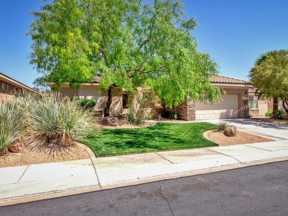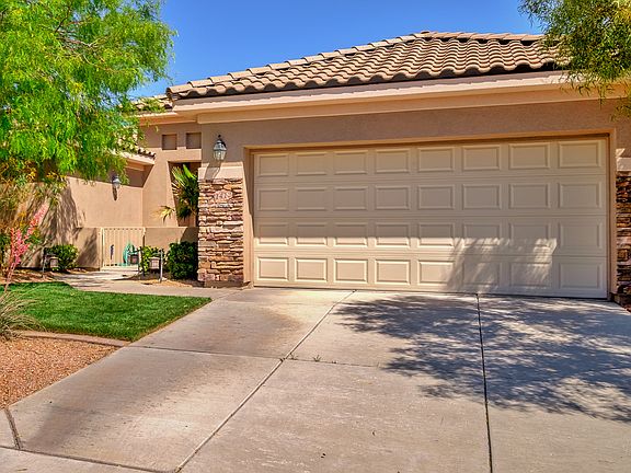 Oh what a beautiful home! Walking through the front door you find a spacious office/den! This home shows great care from the owner. The kitchen features stainless steel appliances, granite counters, small and large pantry and reverse osmosis. A large master bedroom ensuite with walk-in closet and a bathroom with dual sinks and shower. Guest Bedroom and bathroom are down the hall. When you go out on the covered patio you will see mountain views from this elevated lot. New irrigation system is complete to take care of all the desert plants. Garage has built in cabinets for extra storage. As an owner, you have use of the Mesquite Vistas clubhouse and swimming pool.