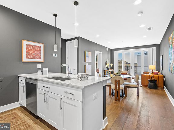 South facing, 2 bed 2 bath with outdoor space and parking within a short distance of the best of DC! Constructed in 2015, this condominium is nestled between 14th Street and Meridian Hill Park, just moments away from the U Street & Columbia Heights metro stations, Target, Trader Joe's, Lediplomat, and all the vibrant spots along the 14th St and 18th Street Corridor! Designed to embrace southern exposure, the interior is bathed in natural light and warmth thanks to French sliding doors. The kitchen boasts a spacious island, ideal for culinary creations, and ample storage to accommodate all your countertop appliances. The living and dining area offer versatility with high ceilings and an expansive floorplan, allowing for customizable arrangements. Step out onto the balcony for relaxation, whether it's dining alfresco or lounging in the sun. For relaxation, the large primary suite features a generous closet and a shower/tub combo, while the guest bathroom offers a convenient walk-in shower. The guest room is spacious enough for a queen bed or serves as a perfect home office.