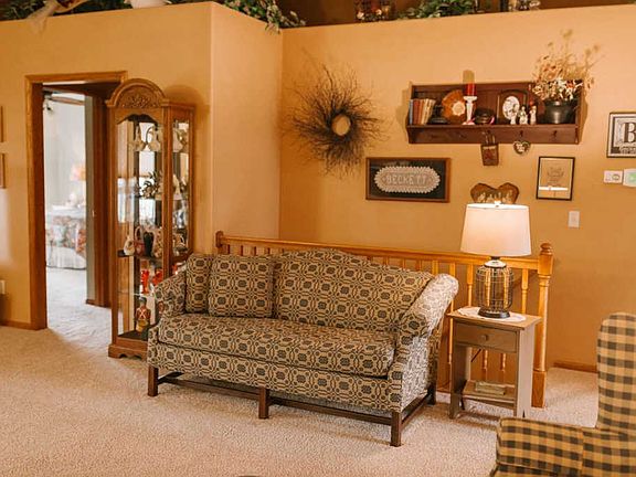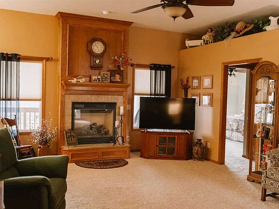 This home has it ALL!! Stunning home in quiet small town, just minutes from Wichita, Hutch & Newton! This home features a ton of upgrades; 4 bedrooms, 3 bath, Ranch style home with a well for irrigation with 2 service stations- for lawn sprinkler and drinking water! New 10X12 shed in back. New carpet and kitchen appliances on the main level! The kitchen also features custom slides in cabinets and farm sink! Whole house interior repainted! The roof is only 1 year old! The basement is HUGE, great for entertaining and has custom built-ins, and crown molding throughout! There is also a projector with amp in basement for those big games! Don't miss out!