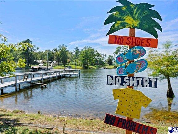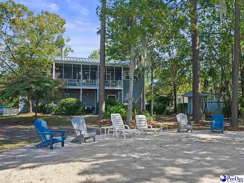 Let's take a look at this immaculate steel structured 5 bed 3 bath 2 story lake home located on a very large and wide lakeside lot with a 165 ft of shoreline and sandy beach in the heart of Wyboo. Enjoy gorgeous sunset views from your porch set right outside through your double sliding doors into a very open recently renovated kitchen and living area. This open floor plan offers a well thought out floor plan with Bedrooms and bathrooms surrounding the 2nd level of this home. Stairs take you down to a large open area that is insulated and heated/cooled for another living space, work area and covered storage space for anything including boats, trailers, golf carts etc. The downstairs includes another separate bedroom, full bathroom and office area. Head outside under a covered porch area great for cooking out and relaxing. The backyard is very shaded with a man built beach area to set the mood and sunbathe. Head towards the lake to your private dock and boat lift. Enjoy swimming and fishing & oh, did I mention the view? Wow! Come take a private tour of this gorgeous home. Other inclusions are a 10x12 storage unit, Rv & Sewer hookup with sewer on-premises. Wood burning fireplace, chair lift, outside shower, 2 large door deep garage and plenty of space for a designated work area, surround sound built in speaker in living area. Lot that the home is on is a leased lot owned by Santee Cooper $792 Yearly