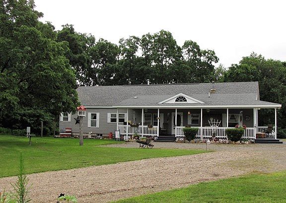 This exceptional home sits on over 12 acres in a serene setting.Manufactured and placed on poured foundation, this home included high-end construction upgrades.A stream runs through the back of the property for fishing.Cozy around the stone fireplace in the winter or enjoy 2 spacious decks and the fire-pit and pool in the summer months.Great outside storage(stable converted to storage).This home is immaculate and interior/exterior has been maintained with exceptional detail. There is an unfinished second floor with tons of potential. Interior finishes include oak crown molding, garden tub in master, new flooring in the living and dining rooms, and master bedroom. Schedule your showing today!