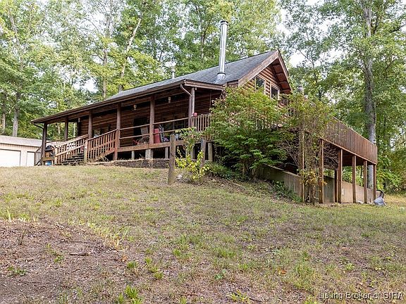Escape to Your Own Private Retreat! This charming log home is nestled on 9 peaceful, wooded acres and features a large pond, offering a true sense of privacy and serenity. Step inside to discover a spacious open-concept layout with soaring vaulted ceilings in the kitchen, dining area, and great room. The kitchen boasts a large island perfect for meal prep and entertaining, while the great room features a cozy wood-burning buck stove, ideal for those chilly evenings. The primary suite offers a peaceful escape with an ensuite bathroom, two generous closets, and a private balcony overlooking the beautiful natural surroundings. The walkout basement is partially finished and includes a gas fireplace, patio access, and views of the pond, perfect for relaxing or hosting guests. You'll love the storage and workspace offered by the 30' x 40' 3-car detached garage AND large utility shed (600 sq ft per assessor site) with overhang, ideal for hobbies, equipment, or a workshop. **This unique property is being sold AS-IS and is priced accordingly. With a little TLC, it has the potential to become a stunning mountain-style retreat. Don't miss this rare opportunity to own a one-of-a-kind home with incredible potential and unmatched natural beauty. It is located approximately 3 minutes from the expressway (less than 2 miles) yet offers the peace and quiet of country living!