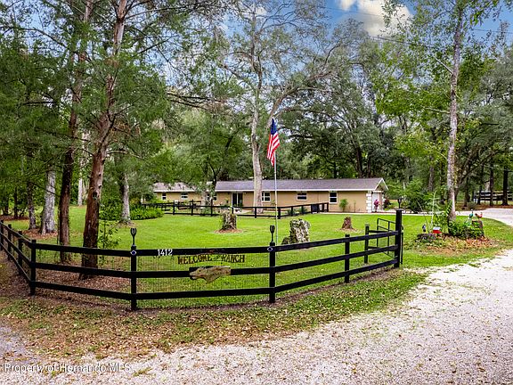 This remarkable gentleman's ranch sits on 2.6 acres of agricultural land and features a fully remodeled 4-bedroom, 3-bathroom pool home with over 2,600 living sq feet and an impressive patio space/enclosed porch. The spacious kitchen comes fully equipped with ample storage to cater to all your cooking needs, while the large living room is perfect for hosting guests or spending quality time with those you love. The property also includes a 30 x 50 red iron metal barn, fenced pasture, and mature oak trees. The gated entrance and oversized driveway/parking pad add precious parking area and added security. Additionally, a round pen for horses, fenced dog run, compost staging area, and a variety of fruit and sustainable trees are available for your enjoyment and are vital for easy homesteading. The property has undergone recent upgrades, including a newer roof, new 4-ton air conditioning, and hurricane-rated windows - 2016. The pool pavers have also been refinished, and the patio space has been expanded to provide more room for outdoor entertainment. The kitchen and bathrooms have been remodeled with modern finishes, upgraded appliances, and new fixtures! The flooring has been updated throughout the home. These upgrades make this ranch a move-in-ready paradise for any buyer or individual looking for a peaceful lifestyle.