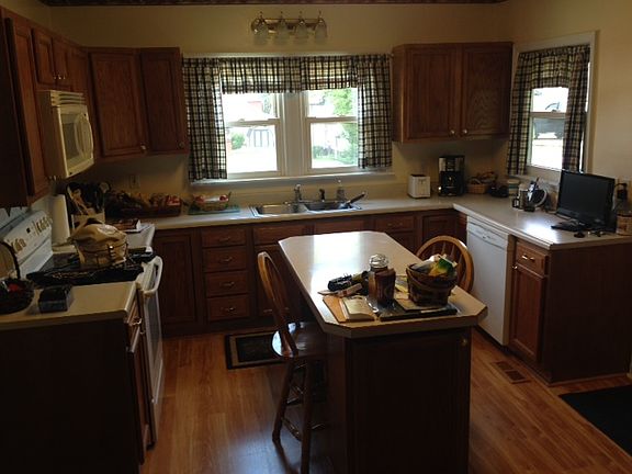 2 bedroom 1.5 bath new kitchen , new roof, new windows, level corner lot, det garage, storage building and unfinished basement. All of this plus a family room and dining room on main floor. Possession day of closing.