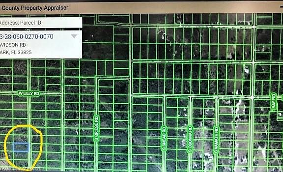 1.15 acres in a dry, flat area. Located in the center of the state in Highlands County, this property is within 1.5 hours to major cities like Orlando, Tampa, Sarasota, Ft. Myers, Punta Gorda, Port St. Lucie, Ft. Pierce as well as the Gulf of Mexico. Lakes and boat ramps near by for your fishing and boating enjoyment. This community will be a wonderful place to build your dream home, have elbow room for a quite, peaceful retreat, but a short drive away for restaurants, stores, doctors, and entertainment.