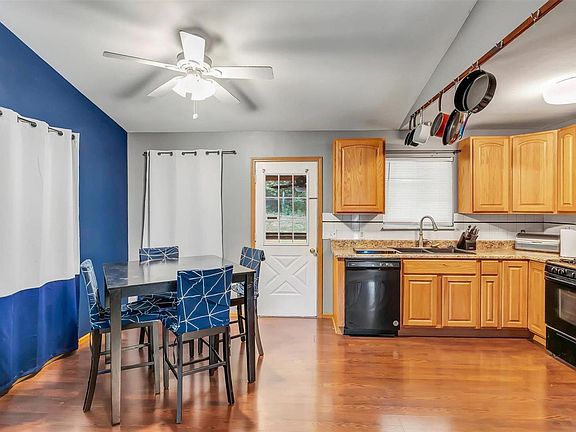 A spacious open floorplan awaits inside this great 3 bedroom, 2 bath home! The great room offers a vaulted ceiling and opens to the dining & kitchen. With plenty of cabinetry, black appliances and adjoining breakfast/dining room that offers convenient access to the covered patio, this home is great for entertaining guests! There are 3 bedrooms and 1 full bath to complete the main floor of this home. The lower level provides additional living space with a 4th guest bedroom area that could be used as an additional family room, a 2nd full bath and laundry area! The fenced in backyard is private and has a shed for storage! Great home!