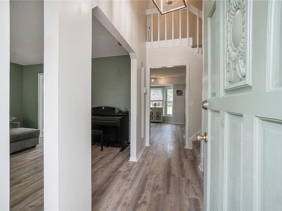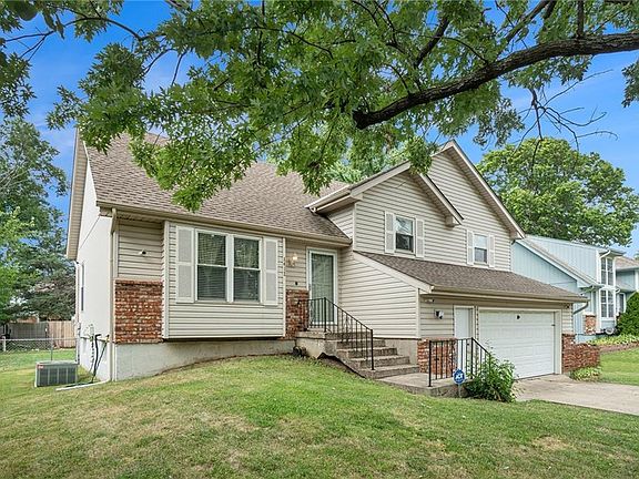 Charming, updated and cute as can be! From the moment you step inside this welcoming side to side split, you will feel perfectly at home. Stylish updates throughout make this home a true show stopper. Vinyl floors span the main floor and entertainment areas and the kitchen features stainless steel appliances and tons of counterspace! The floor plan offers a finished primary bedroom and private en suite in addition to three other bedrooms! Adorable built ins next to the cozy fireplace make the den the perfect place to snuggle in for movie night, or walkout to the gorgeous backyard to enjoy fall nights under the stars. Rare interior entrance to sub-basement boasts plenty of storage space! Walking distance to not one but TWO parks, shops and dining and the Indian Creek Trail- this home is truly nestled in between so many of the amazing amenities Olathe has to offer!