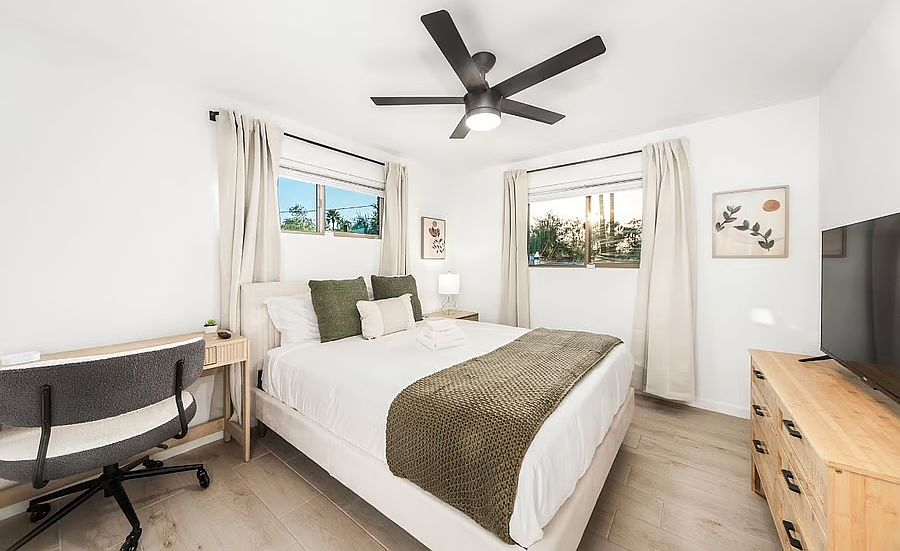 This beautifully renovated fully furnished three-bedroom, two-bathroom home offers a fresh, new feel, meticulously maintained and professionally decorated. Owner lived here and now manages the property with exceptional attention to detail. Sunlight fills the space throughout the day, highlighting the modern kitchen equipped with all necessary appliances and tools you would need to prepare meals, with a cozy dining area for you to enjoy them. Relax in the Arizona room, where you can enjoy Tucsons stunning weather, bug-free. The common areas are professionally cleaned every other week including shared bathroom, ensuring a tidy and comfortable environment. The home also benefits from pest control and, landscaping, in addition to other many small details to keep tenants comfortable during their stays. Managed directly by the owner, who is easily available to address any concerns, this quiet, safe home where all amenities and utilities are included is the perfect place to call home. This location is a no-brainer with so much located steps away! From excellent dining options, grocery store, and a wonderful gym, and so much more. University of Arizona (~5 min), Banner University Medical Center ( 5 min), Tucson Medical Center (~10min), and Northwest Medical Center (~15min) are all located so conveniently close to this home, it makes this location a no brainer! Downtown Tucson and all the trendy fun it has to offer is just 11 mins away Tucson Internetional Airport is just ~20 mins away. Need I say more?! Smart TV description Standard ROKU Smart TV with in TV Apps to watch all of your favorite TV showers, fiberoptic internet to ensure uninterrupted streaming. Space Step into this spacious bedroom, meticulously designed to offer comfort, style, and function. The clean, homey atmosphere invites relaxation, while the large closet, dresser, and side table provide ample storage. A dedicated desk and chair create a perfect workspace, complemented by a smart TV for entertainment. Shared bathroom with only one other person, CLEANED EVERY OTHER WEEK FOR YOU! Offering everything you need for a serene and comfortable stay. Neighborhood overview Located in the heart of Tucson, this quiet and extremely safe neighborhood offers the perfect mix of convenience and tranquility. Just steps from lively bars, restaurants, gyms, and grocery stores, it provides easy access to all the essentials. With Tucsons major hospitals nearby, everything you need is within walking distance. Enjoy peaceful, secure living while staying close to the citys best amenities.