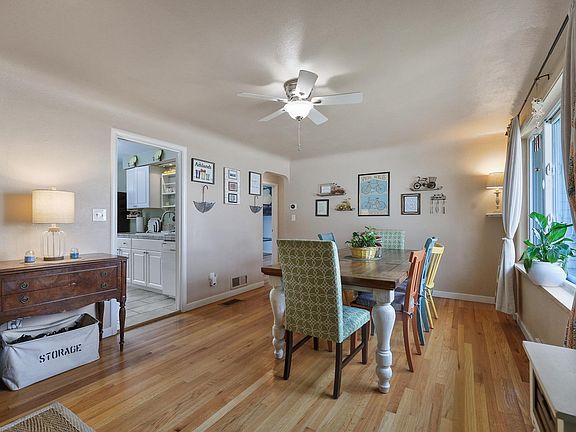 Discover the charm of this 1950's 3 bedroom 2 bath home. Centrally located providing an easy commute to work, dining, and entertainment. Step into the charming living room with original hardwood floors and a new oversized window providing plenty of natural lighting. Just steps away is the functional kitchen with a tile countertop and newer appliances, plus just around the corner is a coffee bar and extra storage. Also on the main floor is a beautiful updated bathroom with glass shower doors and storage for toiletries. Downstairs you will find a spacious family room with an egress window, a second bathroom with a new shower and vinyl plank flooring, laundry, and the 3rd bedroom. Enjoy the private fenced backyard with a patio for entertaining, and plenty of space for gardening and relaxing. Attached 1 car garage with opener, as well as a detached 1 car garage that is great workshop space or extra storage. Low maintenance vinyl siding, newer furnace w/AC, and a gas water heater.