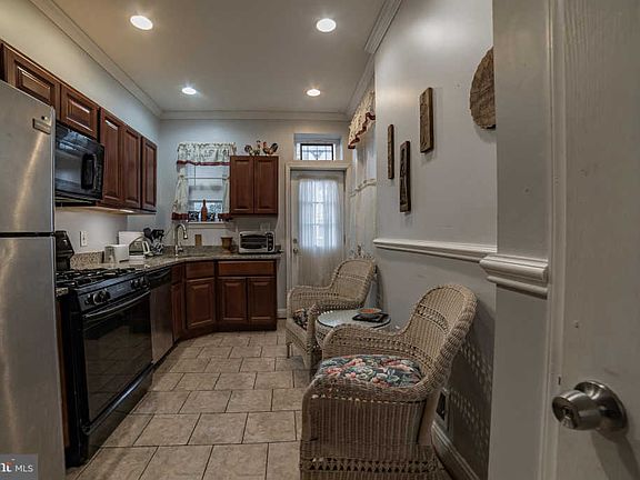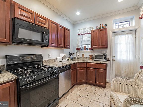 Brick front three story townhome in the Oliver neighborhood, with 2 bedrooms and 1.5 baths. Featuring hardwood floors throughout the first floor and a living/dining room combo. The living room features crown molding, chair railing, tray ceiling, ceiling fan, fireplace with mantel, and a large window that lets in streams of natural light. The dining room features a centerpiece 3 light Nickle chandelier and leads into the kitchen. The kitchen features tile flooring, crown molding, chair railing, and recessed lighting. Plenty of storage and workspace with the beautiful cherry wood cabinets and granite countertops, along a deep sink with window view and detachable faucet. Also features black and stainless steel appliances, ceiling fan, and an additional exit door leading to the fully fenced in backyard - the perfect place for a summertime BBQ! Upper level has two large bedrooms, featuring plush carpeting and ceiling fans. Unfinished basement features a large open space, exposed brick walls, and a full size General Electric Washer and Dryer. Easy access to US-40 and I-83 and walking distance to the Oliver Recreation Center and multiple shopping and dining destinations. Do not miss this one!