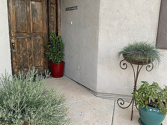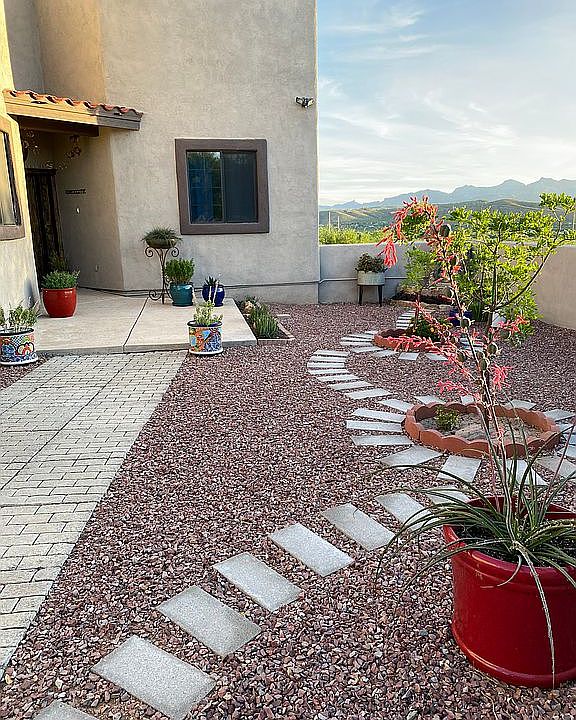 Beautiful unique custom home. 3bd 2 ba ,office/den or possible 4th bedroom, new concrete floors and countertops, wood fireplace, 14 ft high ceilings, 2-yr old ac system all electic. 2 car garage, 2 car carport, room for rv, workshop and barn, landscaped courtyard and patio, fenced and landscaped backyard, covered BBQ patio, mountains views, master bath double shower heads ,walk in closets in master so much more.