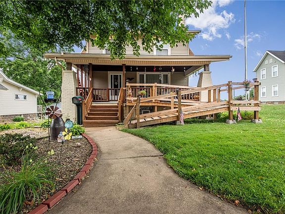 SPACIOUS 3 BEDROOM 1.5 BATH COLONIAL! The large living room features a wood-burning fireplace with built-in shelving and lots of windows that bring in tons of natural light. In the kitchen, you'll find plenty of wood cabinets, laminate flooring, Formica counters and white appliances that stay. The mudroom leads to the deck, overlooking the backyard, which is a perfect spot for relaxing or entertaining. The dining room is currently being used as a first-floor bedroom and a full bathroom sits just off of the dining room. The second floor features 3 bedrooms and a half bath that can be easily converted back to a full bathroom. The front porch features a ramp for easy access to the home. The attached 1 car garage provides access to the basement. Conveniently located near Wampler Park, restaurants and more. Come see what this home has to offer!