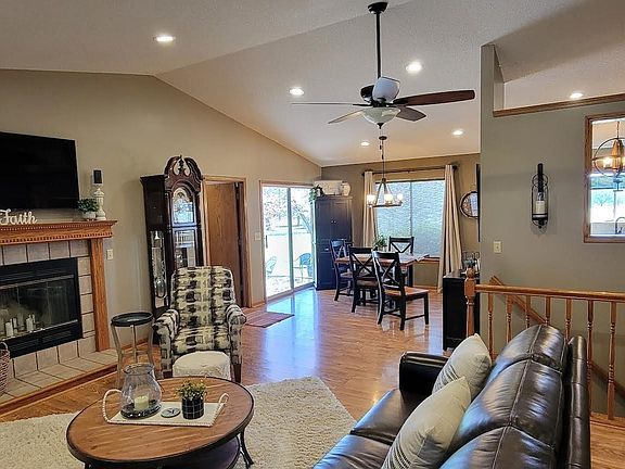Don't miss out on this gorgeously maintained 4 bedroom, 3 bath, home on just shy of 2.5 acres in Peck, KS. Upstairs boasts three bedrooms including the master bedroom with a beautifully, newly, remodeled master bathroom. Enjoy the vaulted ceilings in the living room, main floor laundry, and the dining room that walks out onto the peaceful covered back patio. All kitchen appliances stay with the home. Downstairs you'll find a large family room (wired for surround sound) with built in entertainment center and wet bar, the 4th bedroom, third bath, and a finished bonus area. Outside the roof is new, 10/2022, there shed has a loft area, many trees, and so much space to make memories with activities, gardening, etc.